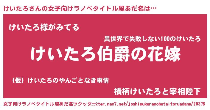 | 意味不明あだ名 | 『けいたろフォーエバー』 |
