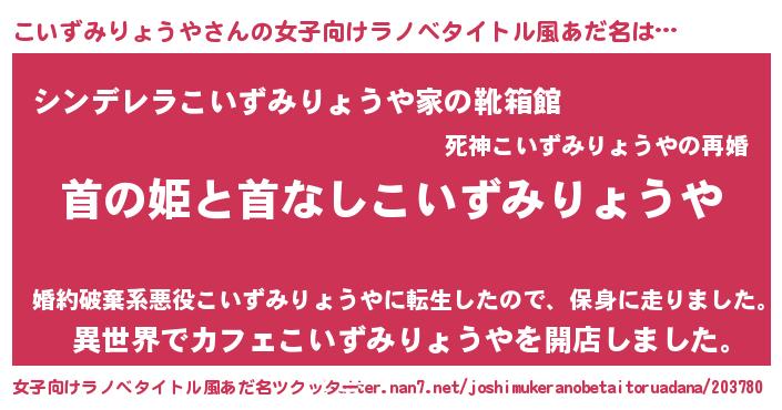 | 胡散臭い通販商品みたいなあだ名 | 『絶対に幸福をもたらす健康食品…その名も「こいずみりょうや」』 |
