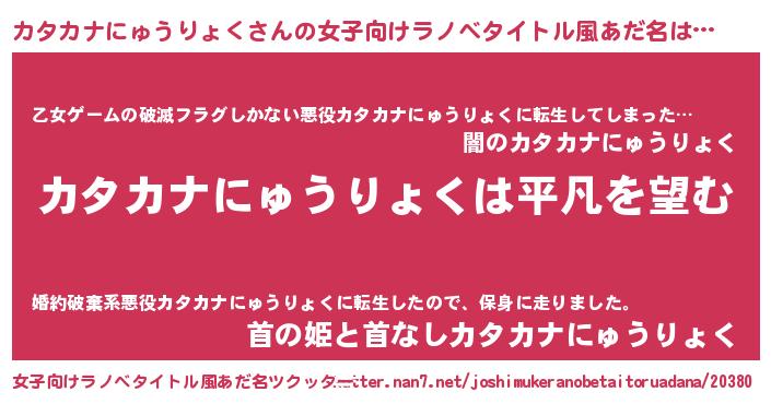 | 男性向けラノベタイトル風あだ名 | 『ダンジョンにカタカナにゅうりょくを求めるのは間違っているだろうか』 |