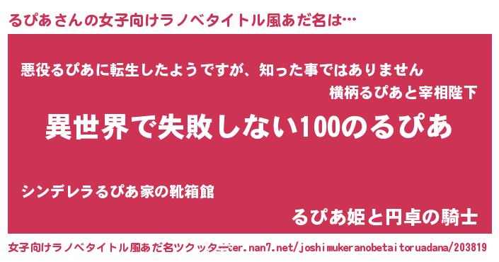 | 男性向けラノベタイトル風あだ名 | 『るぴあという概念が存在しない退屈な世界 』 |