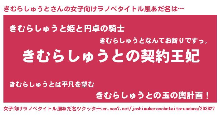 | 男性向けラノベタイトル風あだ名 | 『きむらしゅうとという概念が存在しない退屈な世界 』 |