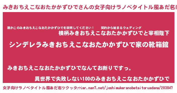 | 胡散臭い通販商品みたいなあだ名 | 『必ず成功するブレスレット…その名も「みきおちえこなおたかかずひで」』 |