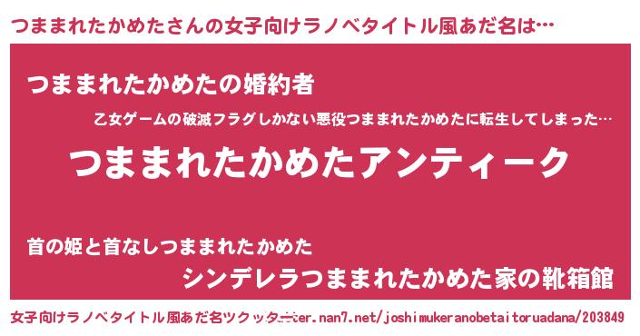 | 男性向けラノベタイトル風あだ名 | 『魔法科高校のつままれたかめた』 |