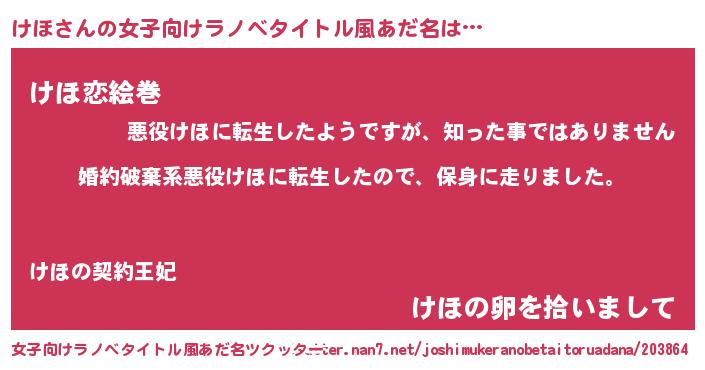 | ヒーロー風カッコイイあだ名 | 『友情の使者けほ』『幻影騎士ケホ』 |