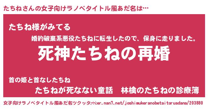 | 男性向けラノベタイトル風あだ名 | 『ノーゲーム・ノータチネ』 |