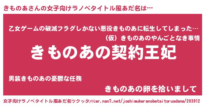 | 男性向けラノベタイトル風あだ名 | 『きものあという概念が存在しない退屈な世界 』 |