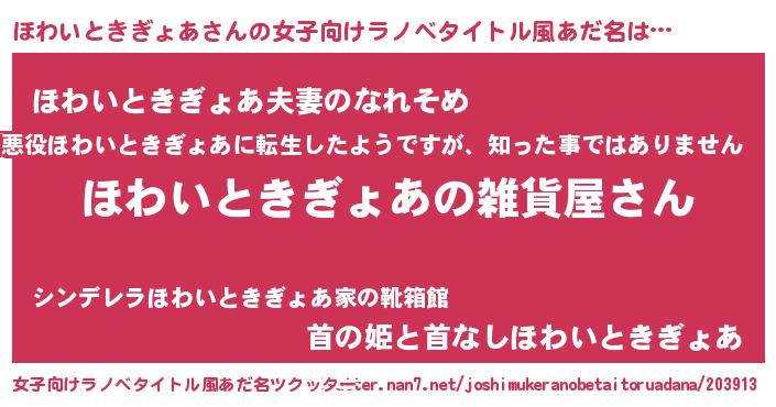 | 男性向けラノベタイトル風あだ名 | 『やはりほわいときぎょあの青春ラブコメはまちがっている 』 |