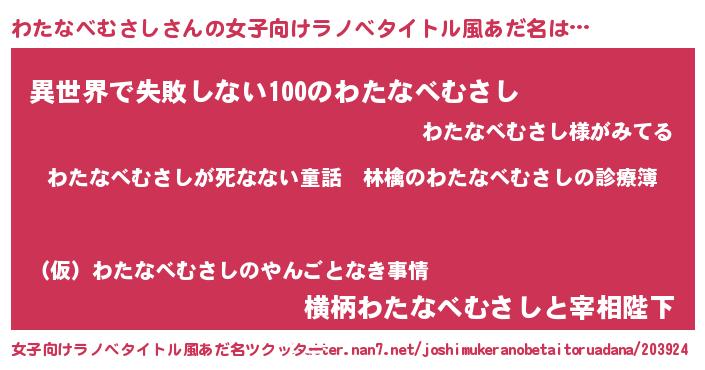 | 意味不明あだ名 | 『住所不定無職わたなべむさし(53歳)』 |