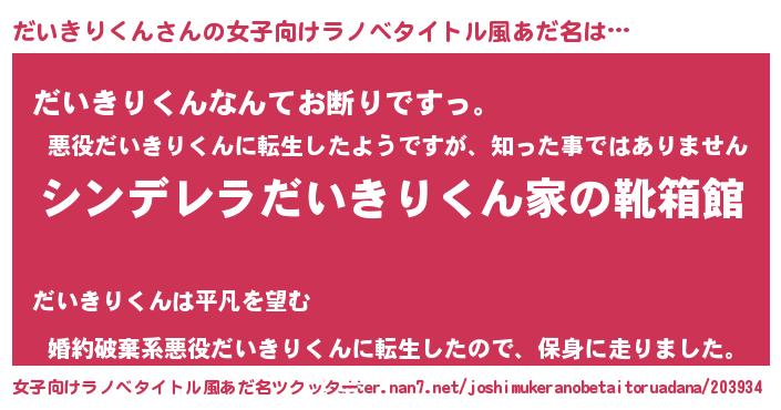 | 男性向けラノベタイトル風あだ名 | 『緋弾のダイキリクン』 |