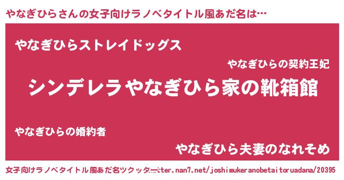 | 意味不明あだ名 | 『自称やなぎひら』『永久保存やなぎひら』 |