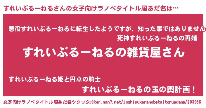 | 男性向けラノベタイトル風あだ名 | 『やはりすれいぶるーねるの青春ラブコメはまちがっている 』 |