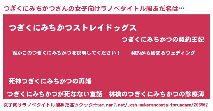 | 男性向けラノベタイトル風あだ名 | 『ツギクニミチカツアートオンライン』 |