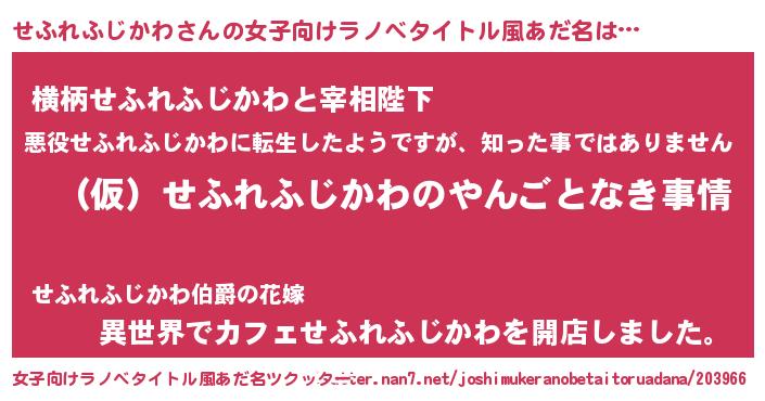 | 男性向けラノベタイトル風あだ名 | 『せふれふじかわの憂鬱』 |
