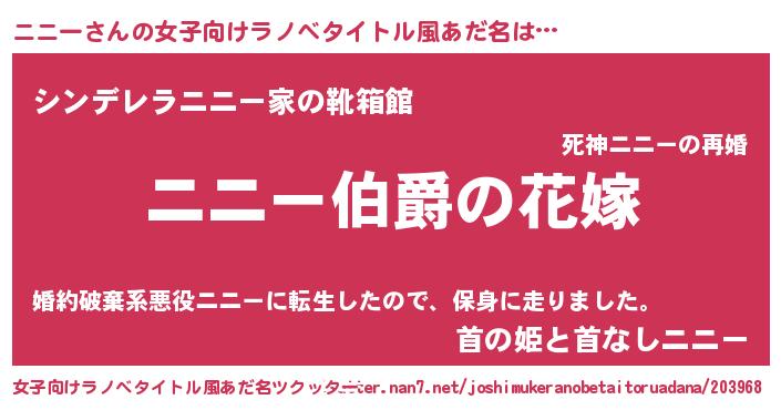 | ヘコむあだ名 | 『豆乳』『ニニっふぃ~』『ニニを』 |