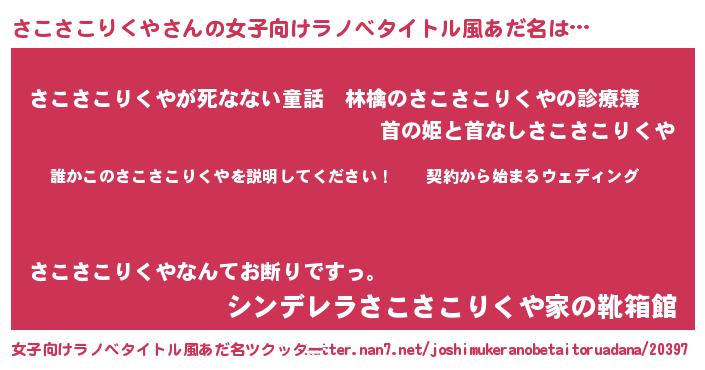 | 肩書あだ名 | 『さこさこりくや御曹司』 |