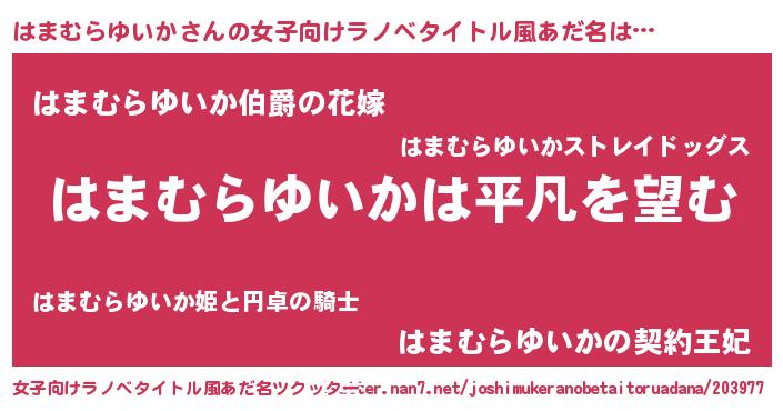 | 男性向けラノベタイトル風あだ名 | 『ダンジョンにはまむらゆいかを求めるのは間違っているだろうか』 |