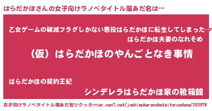 | 男性向けラノベタイトル風あだ名 | 『はらだかほの憂鬱』『緋弾のハラダカホ』 |