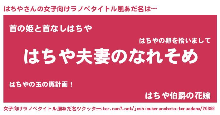 | ヒーロー風カッコイイあだ名 | 『友情の使者はちや』『幻影騎士ハチ』 |