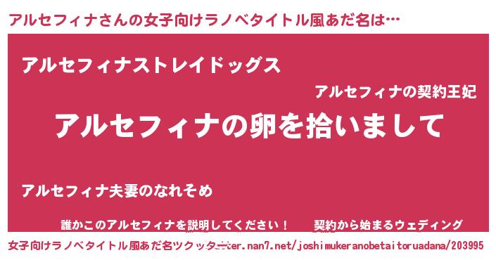 | 男性向けラノベタイトル風あだ名 | 『アルセフィナの嫁は女の子じゃないと思った?』 |