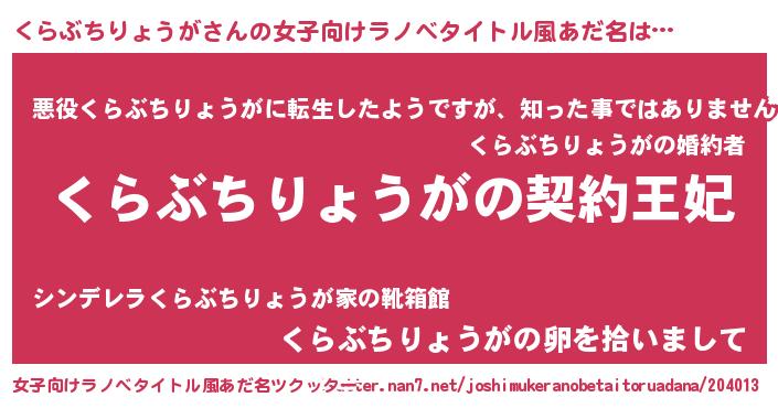 | 意味不明あだ名 | 『永久保存くらぶちりょうが』 |