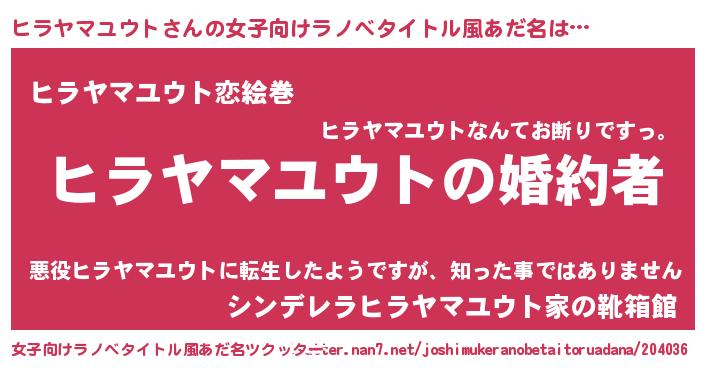 | ファンタジー風あだ名 | 『エターナルヒラヤマユウトー』 |