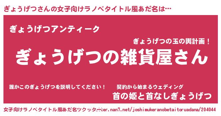 | 意味不明あだ名 | 『ぎょうげつフォーエバー』 |