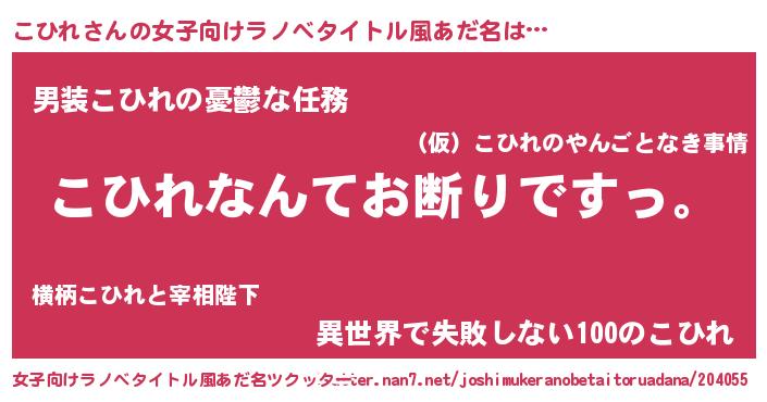 | 男性向けラノベタイトル風あだ名 | 『魔法科高校のこひれ』『こひれの憂鬱』 |