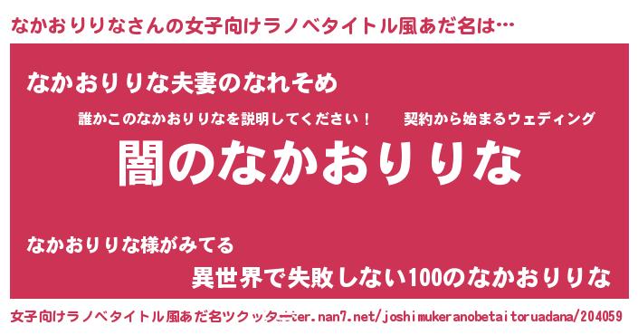 | 男性向けラノベタイトル風あだ名 | 『Re:なかおりりなから始める異世界生活』 |