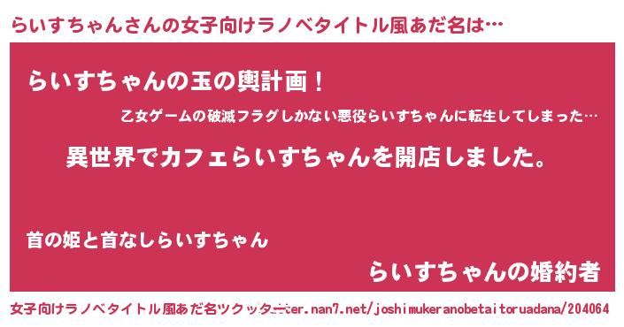 | 男性向けラノベタイトル風あだ名 | 『誰もが恐れるあのらいすちゃんが、ぼくの専属メイドになるようです。』 |