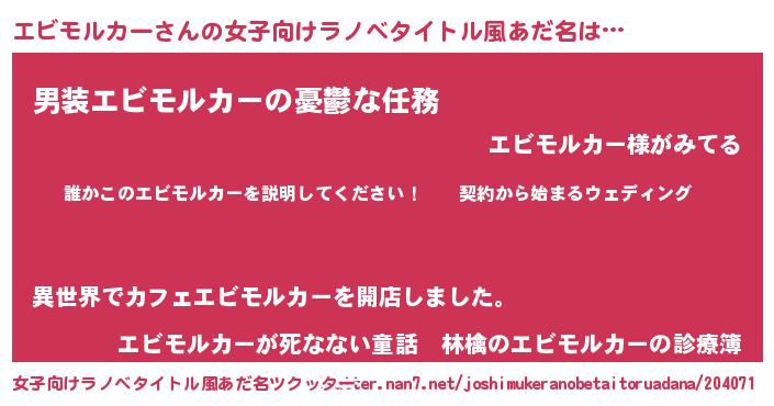 | 男性向けラノベタイトル風あだ名 | 『エビモルカーアートオンライン』 |