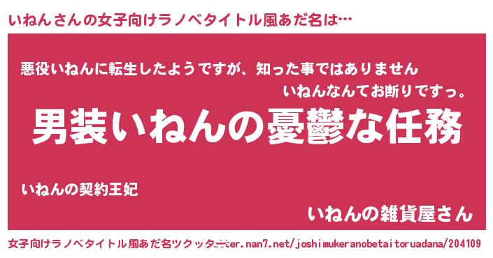 | 男性向けラノベタイトル風あだ名 | 『冴えないいねんの育てかた』 |