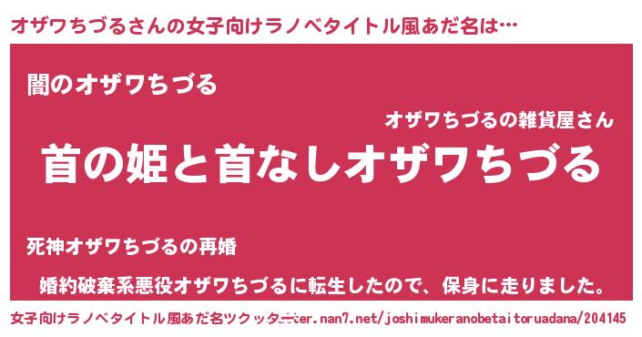 | 男性向けラノベタイトル風あだ名 | 『はたらくオザワちづるさま!』 |
