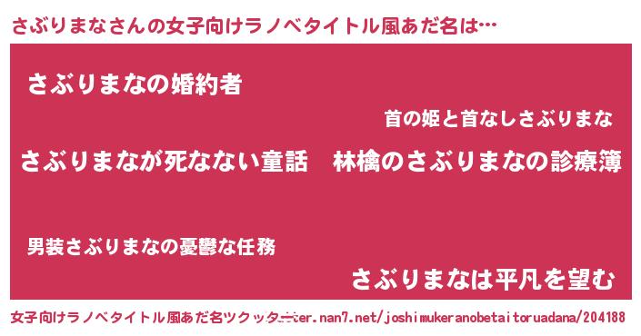 | 意味不明あだ名 | 『住所不定無職さぶりまな(59歳)』 |