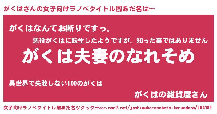 | 意味不明あだ名 | 『眠気覚ましガムがくは味』『自称がくは』 |
