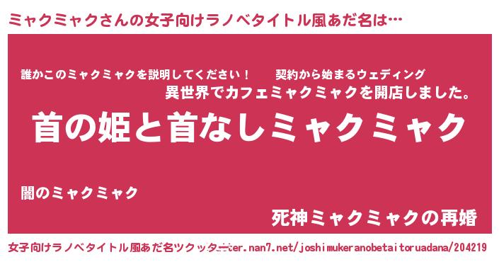 | ファンタジー風あだ名 | 『ミャフェル』『クインミット』 |