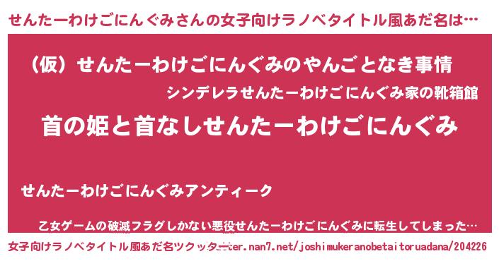 | 男性向けラノベタイトル風あだ名 | 『はたらくせんたーわけごにんぐみさま!』 |