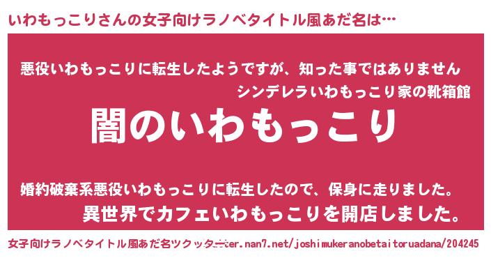 | 男性向けラノベタイトル風あだ名 | 『Re:いわもっこりから始める異世界生活』 |
