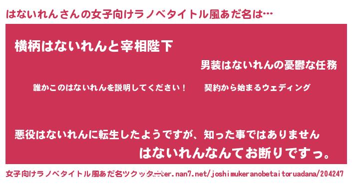 | 男性向けラノベタイトル風あだ名 | 『ハナイレンアートオンライン』 |
