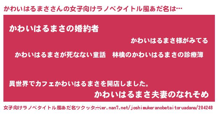 | 男性向けラノベタイトル風あだ名 | 『魔弾の王とかわいはるまさ』 |