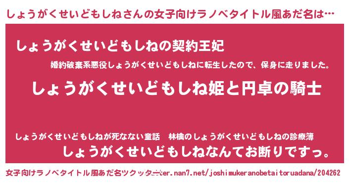 | 男性向けラノベタイトル風あだ名 | 『しょうがくせいどもしねの憂鬱』 |
