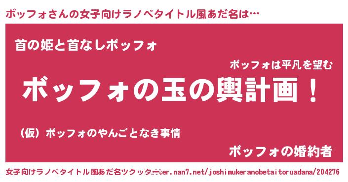 | 胡散臭い通販商品みたいなあだ名 | 『運命の人と巡り会える高級そうな壺…その名も「ボッフォ」』 |