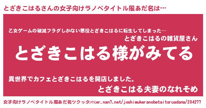 | 男性向けラノベタイトル風あだ名 | 『とざきこはるの嫁は女の子じゃないと思った?』 |
