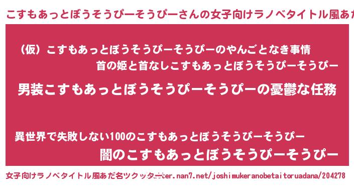 | 恥ずかしいあだ名 | 『プリティーこすもあっとぼうそうぴーそうぴー』 |