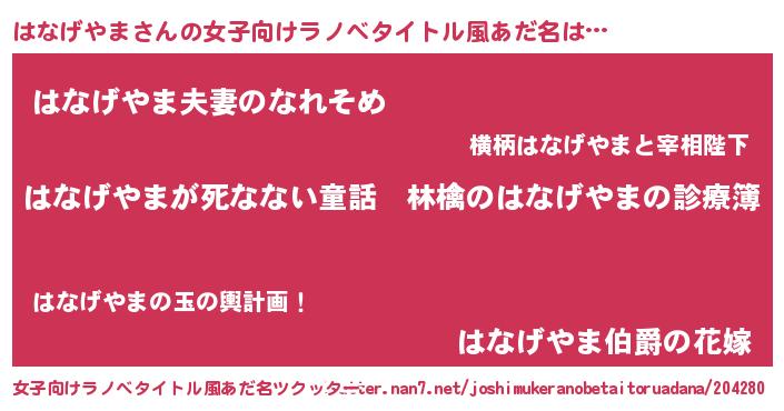 | 男性向けラノベタイトル風あだ名 | 『魔弾の王とはなげやま』 |