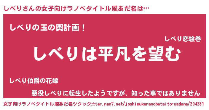 | 料理風あだ名 | 『しべりの豆乳スープ』 |
