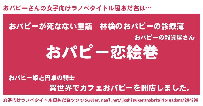 | 男性向けラノベタイトル風あだ名 | 『ノーゲーム・ノーオパピー』 |
