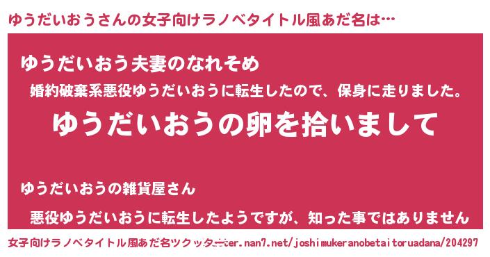 | 意味不明あだ名 | 『とにかく怪しいゆうだいおう』 |
