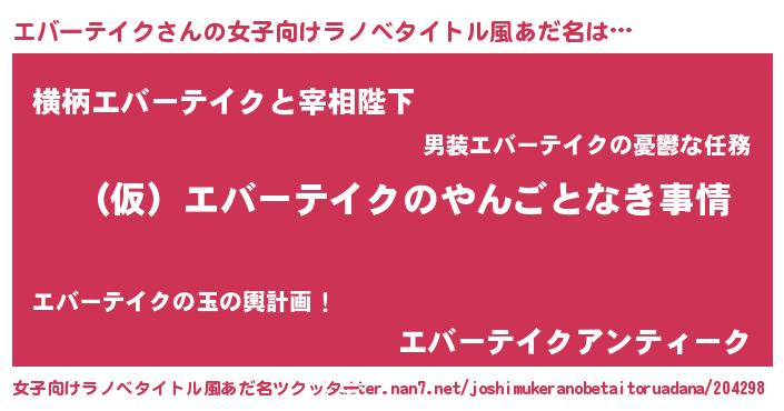 | 胡散臭い通販商品みたいなあだ名 | 『必ず成功するブレスレット…その名も「エバーテイク」』 |