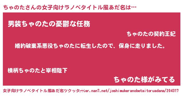| ヘコむあだ名 | 『ちゃぷりん』『ちゃのた(遠い目)』 |