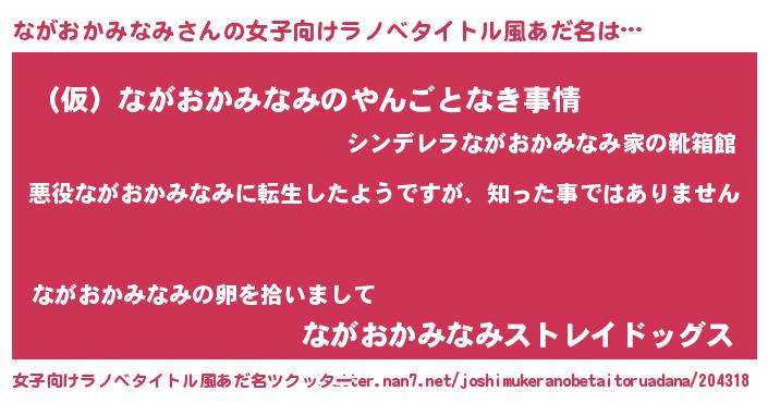 | 男性向けラノベタイトル風あだ名 | 『この素晴らしい世界にながおかみなみを!』 |